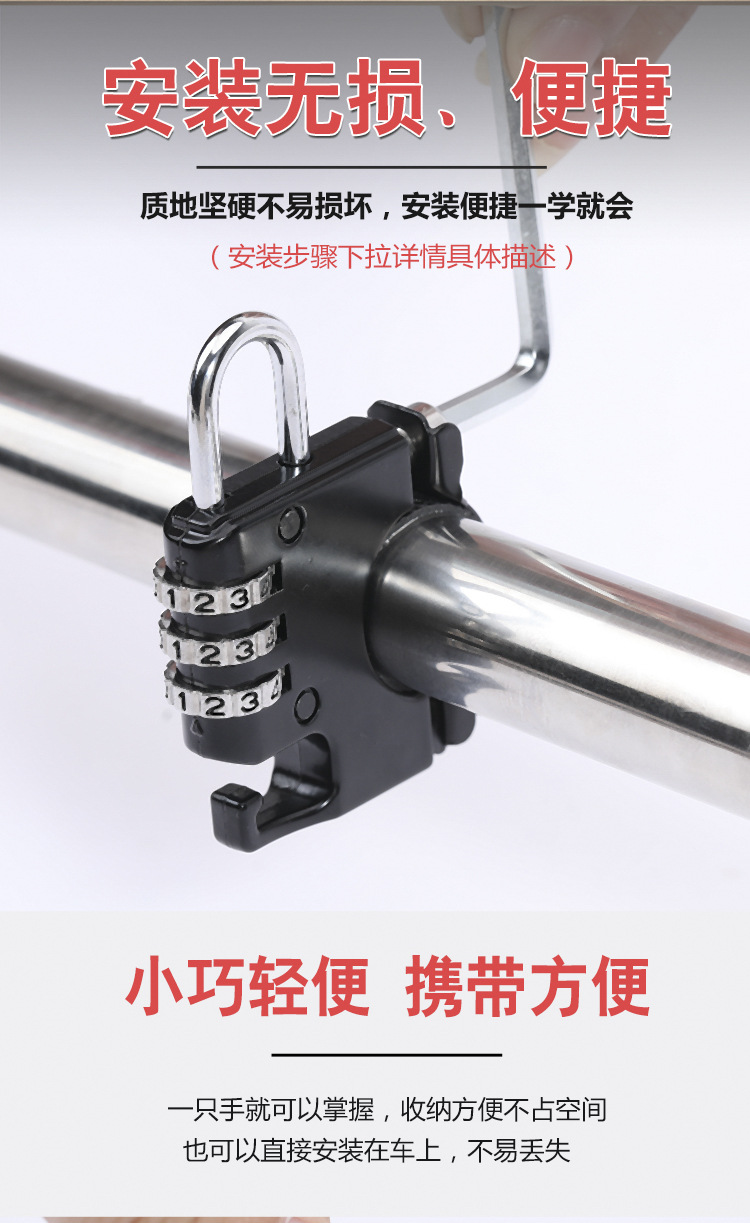 [0901] อุปกรณ์ล็อค หมวก รหัส3ตัว ติดแฮนด์ จักรยาน ป้องกันขโมย พร้อมตะขอแขวน อเนกประสงค์