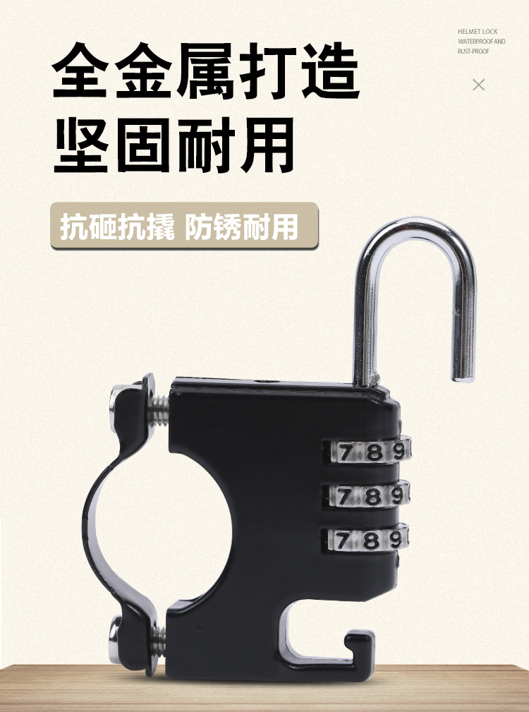 [0901] อุปกรณ์ล็อค หมวก รหัส3ตัว ติดแฮนด์ จักรยาน ป้องกันขโมย พร้อมตะขอแขวน  อเนกประสงค์